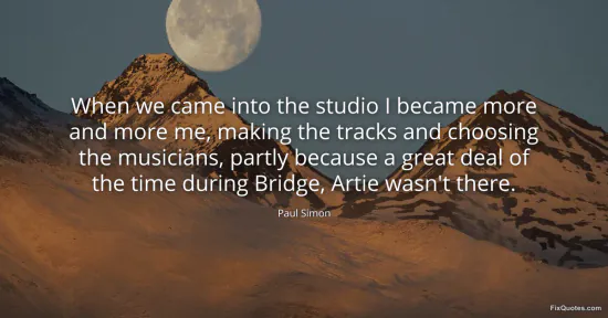 The context is Bridge Over Troubled Water, recorded at the peak of Simon & Garfunkel’s fame and near the end of their partnership. Simon was already the primary songwriter; the quote reveals how the studio became the arena where that hierarchy hardened into fact. He’s not talking about inspiration, but infrastructure: tracks, hires, decisions. Those are the levers of identity in recorded music, where the person shaping takes and arrangements becomes the de facto author, even if the public face is shared.