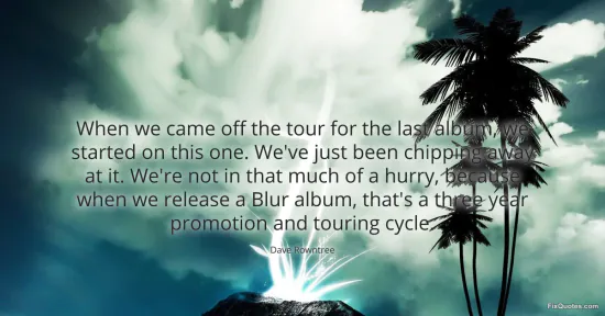 Rowntree, Dave. (2026, January 17). When we came off the tour for the last album, we started on this one. We've just been chipping away at it. We're not in that much of a hurry, because when we release a Blur album, that's a three year promotion and touring cycle. FixQuotes. https://fixquotes.com/quotes/when-we-came-off-the-tour-for-the-last-album-we-58870/