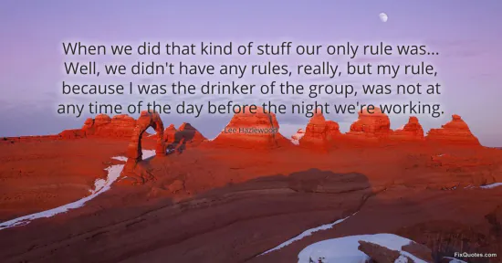 Hazlewood, Lee. "When we did that kind of stuff our only rule was... Well, we didn't have any rules, really, but my rule, because I was the drinker of the group, was not at any time of the day before the night we're working." FixQuotes. January 16, 2026. https://fixquotes.com/quotes/when-we-did-that-kind-of-stuff-our-only-rule-was-127296/.
