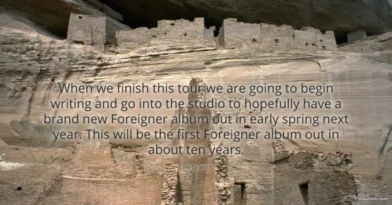 Gramm, Lou. (2026, January 15). When we finish this tour we are going to begin writing and go into the studio to hopefully have a brand new Foreigner album out in early spring next year. This will be the first Foreigner album out in about ten years. FixQuotes. https://fixquotes.com/quotes/when-we-finish-this-tour-we-are-going-to-begin-155443/