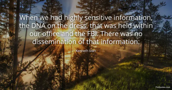 Starr, Kenneth. (2026, January 16). When we had highly sensitive information, the DNA on the dress, that was held within our office and the FBI. There was no dissemination of that information. FixQuotes. https://fixquotes.com/quotes/when-we-had-highly-sensitive-information-the-dna-111845/
