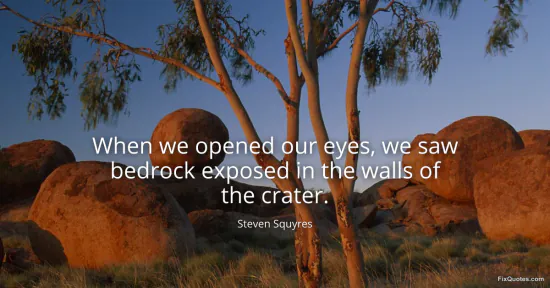 Squyres, Steven. "When we opened our eyes, we saw bedrock exposed in the walls of the crater." FixQuotes. January 16, 2026. https://fixquotes.com/quotes/when-we-opened-our-eyes-we-saw-bedrock-exposed-in-96399/.