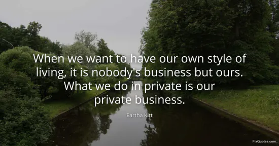 Kitt, Eartha. (2026, January 17). When we want to have our own style of living, it is nobody's business but ours. What we do in private is our private business. FixQuotes. https://fixquotes.com/quotes/when-we-want-to-have-our-own-style-of-living-it-43064/