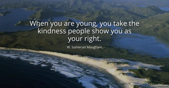 Maugham, W. Somerset. (2026, February 20). When you are young, you take the kindness people show you as your right. FixQuotes. https://fixquotes.com/quotes/when-you-are-young-you-take-the-kindness-people-17968/