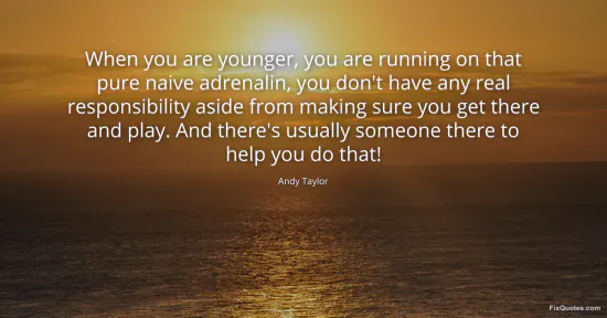 Taylor, Andy. (2026, January 17). When you are younger, you are running on that pure naive adrenalin, you don't have any real responsibility aside from making sure you get there and play. And there's usually someone there to help you do that! FixQuotes. https://fixquotes.com/quotes/when-you-are-younger-you-are-running-on-that-pure-37483/