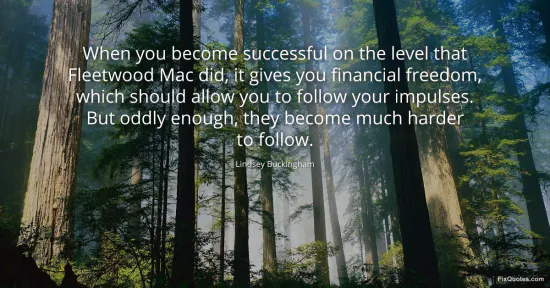 Buckingham, Lindsey. "When you become successful on the level that Fleetwood Mac did, it gives you financial freedom, which should allow you to follow your impulses. But oddly enough, they become much harder to follow." FixQuotes. January 16, 2026. https://fixquotes.com/quotes/when-you-become-successful-on-the-level-that-114230/.