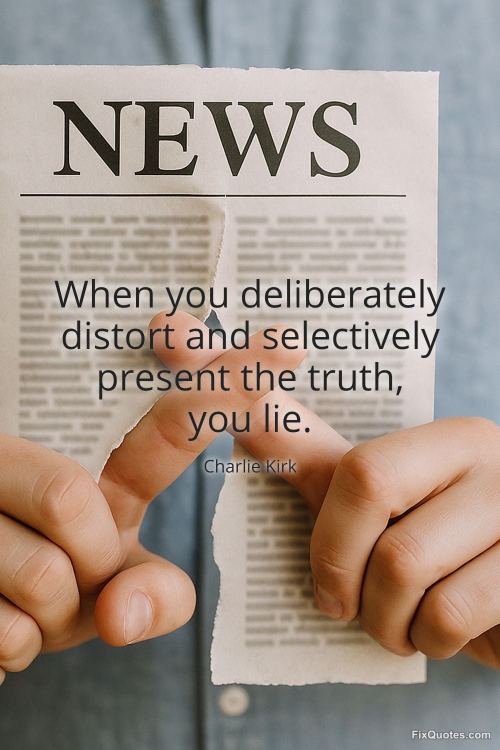 Kirk, Charlie. (2026, January 13). When you deliberately distort and selectively present the truth, you lie. FixQuotes. https://fixquotes.com/quotes/when-you-deliberately-distort-and-selectively-173182/