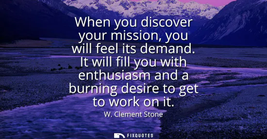 "When you discover your mission, you will feel its demand. It will fill you with enthusiasm and a burning desire to get to work on it"