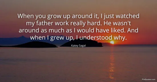 Sagal, Katey. "When you grow up around it, I just watched my father work really hard. He wasn't around as much as I would have liked. And when I grew up, I understood why." FixQuotes. January 16, 2026. https://fixquotes.com/quotes/when-you-grow-up-around-it-i-just-watched-my-127050/.