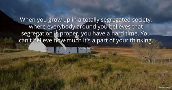 Foote, Shelby. (2026, January 16). When you grow up in a totally segregated society, where everybody around you believes that segregation is proper, you have a hard time. You can't believe how much it's a part of your thinking. FixQuotes. https://fixquotes.com/quotes/when-you-grow-up-in-a-totally-segregated-society-98956/