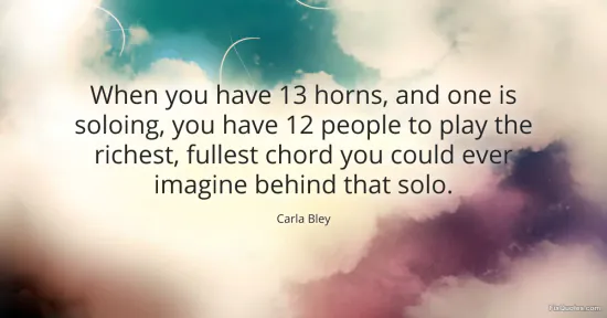 Bley, Carla. (2026, January 16). When you have 13 horns, and one is soloing, you have 12 people to play the richest, fullest chord you could ever imagine behind that solo. FixQuotes. https://fixquotes.com/quotes/when-you-have-13-horns-and-one-is-soloing-you-101273/