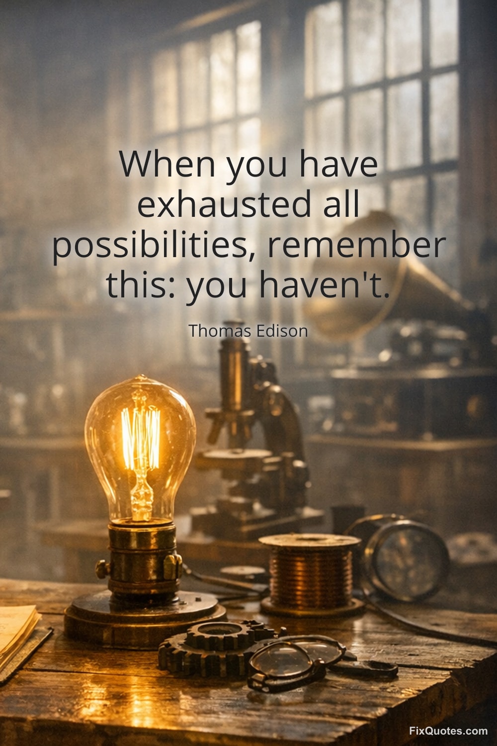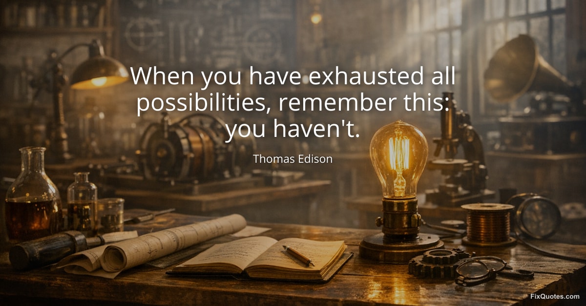 Edison, Thomas. "When you have exhausted all possibilities, remember this: you haven't." FixQuotes. January 30, 2026. https://fixquotes.com/quotes/when-you-have-exhausted-all-possibilities-184768/.