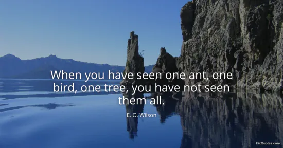 Wilson, E. O. "When you have seen one ant, one bird, one tree, you have not seen them all." FixQuotes. January 18, 2026. https://fixquotes.com/quotes/when-you-have-seen-one-ant-one-bird-one-tree-you-17262/.