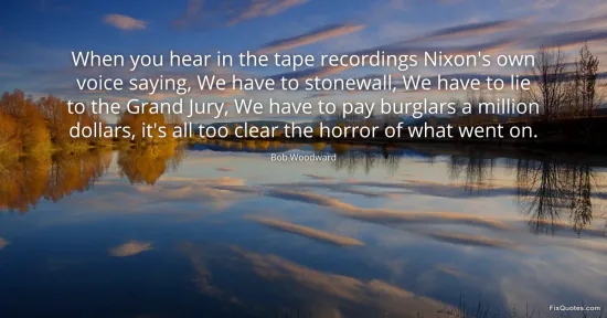 Woodward, Bob. "When you hear in the tape recordings Nixon's own voice saying, We have to stonewall, We have to lie to the Grand Jury, We have to pay burglars a million dollars, it's all too clear the horror of what went on." FixQuotes. January 15, 2026. https://fixquotes.com/quotes/when-you-hear-in-the-tape-recordings-nixons-own-142222/.
