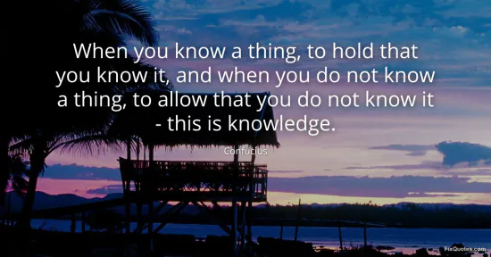 "When you know a thing, to hold that you know it, and when you do not know a thing, to allow that you do not know it - this is knowledge." FixQuotes, 15 Jan. 2026, https://fixquotes.com/quotes/when-you-know-a-thing-to-hold-that-you-know-it-35936/. Accessed 12 Feb. 2026.