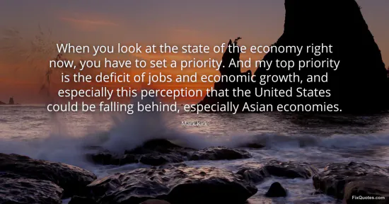 Kirk, Mark. "When you look at the state of the economy right now, you have to set a priority. And my top priority is the deficit of jobs and economic growth, and especially this perception that the United States could be falling behind, especially Asian economies." FixQuotes. February 18, 2026. https://fixquotes.com/quotes/when-you-look-at-the-state-of-the-economy-right-61363/.
