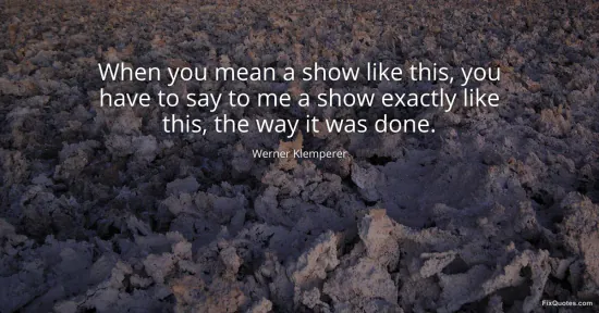 Klemperer, Werner. (2026, January 16). When you mean a show like this, you have to say to me a show exactly like this, the way it was done. FixQuotes. https://fixquotes.com/quotes/when-you-mean-a-show-like-this-you-have-to-say-to-82990/