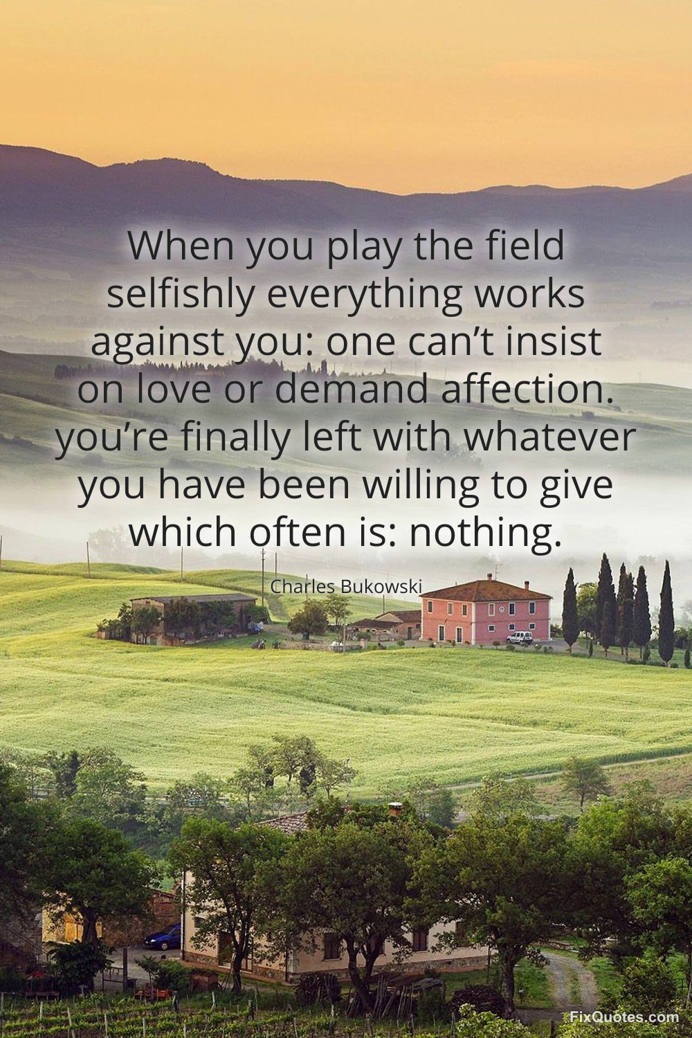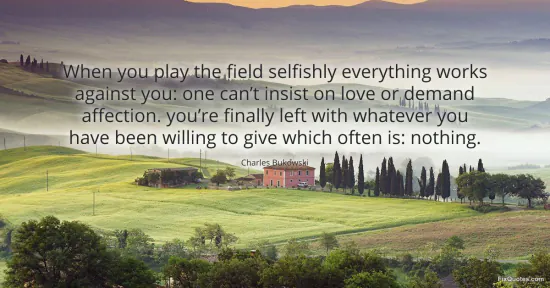 Bukowski, Charles. (2026, February 10). When you play the field selfishly everything works against you: one can’t insist on love or demand affection. you’re finally left with whatever you have been willing to give which often is: nothing. FixQuotes. https://fixquotes.com/quotes/when-you-play-the-field-selfishly-everything-185230/