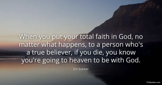 Bakker, Jim. "When you put your total faith in God, no matter what happens, to a person who's a true believer, if you die, you know you're going to heaven to be with God." FixQuotes. January 16, 2026. https://fixquotes.com/quotes/when-you-put-your-total-faith-in-god-no-matter-106591/.