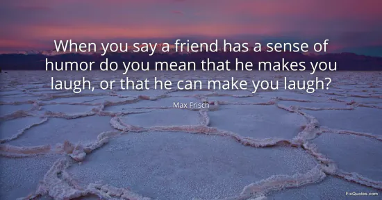 Frisch, Max. (2026, January 17). When you say a friend has a sense of humor do you mean that he makes you laugh, or that he can make you laugh? FixQuotes. https://fixquotes.com/quotes/when-you-say-a-friend-has-a-sense-of-humor-do-you-64616/