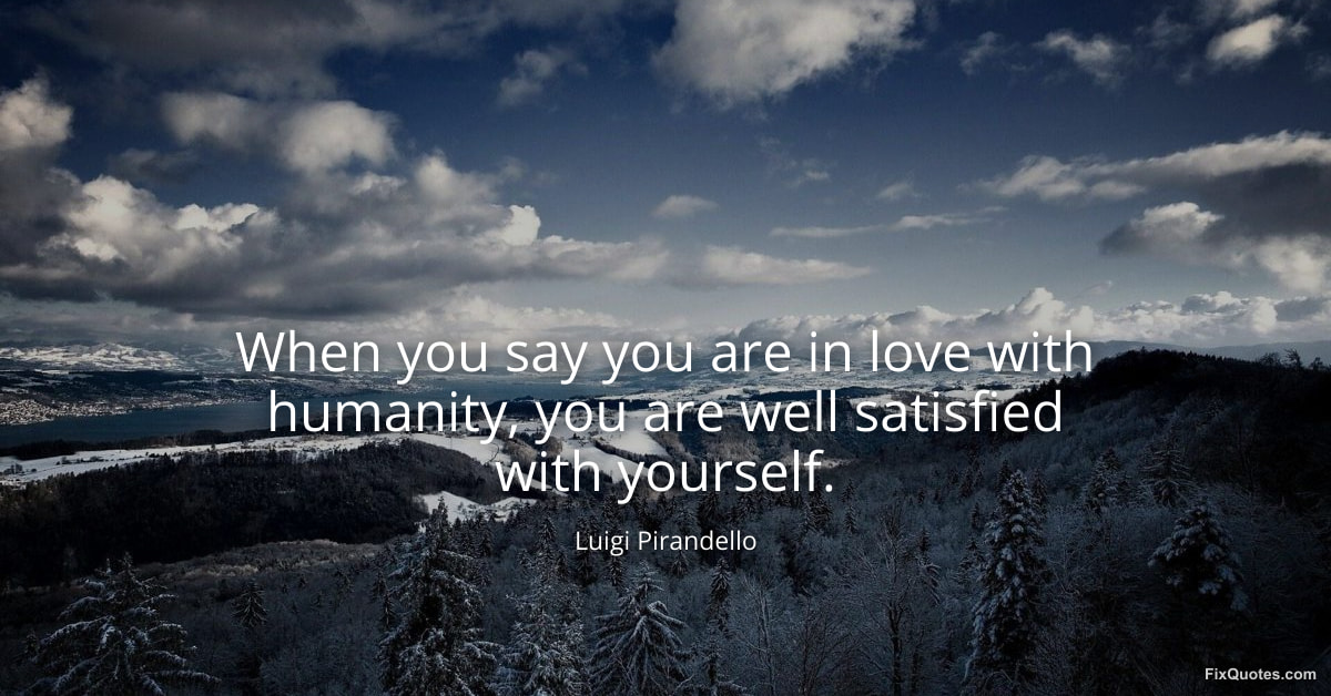 Pirandello, Luigi. (2026, January 17). When you say you are in love with humanity, you are well satisfied with yourself. FixQuotes. https://fixquotes.com/quotes/when-you-say-you-are-in-love-with-humanity-you-72500/