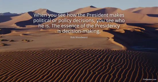 Woodward, Bob. (2026, January 17). When you see how the President makes political or policy decisions, you see who he is. The essence of the Presidency is decision-making. FixQuotes. https://fixquotes.com/quotes/when-you-see-how-the-president-makes-political-or-40928/