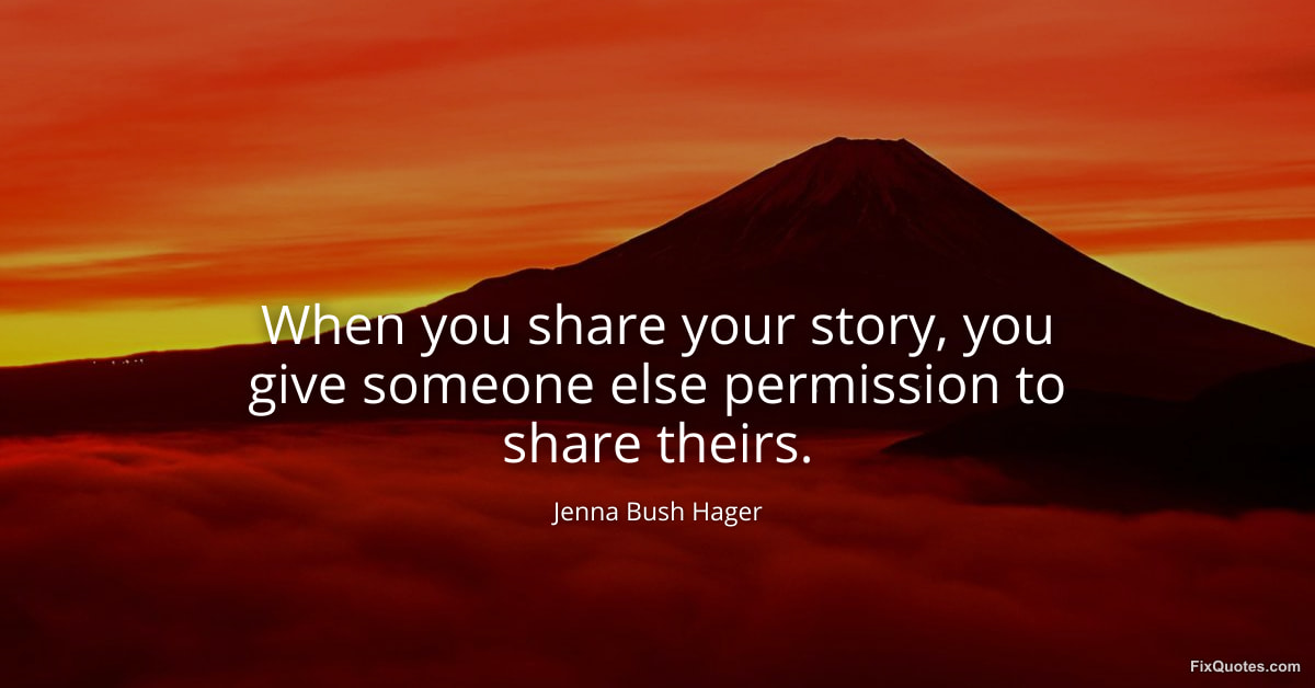 Hager, Jenna Bush. (2026, January 26). When you share your story, you give someone else permission to share theirs. FixQuotes. https://fixquotes.com/quotes/when-you-share-your-story-you-give-someone-else-184583/