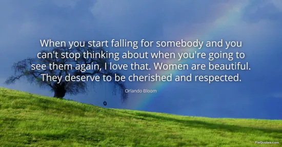 Bloom, Orlando. (2026, January 16). When you start falling for somebody and you can't stop thinking about when you're going to see them again, I love that. Women are beautiful. They deserve to be cherished and respected. FixQuotes. https://fixquotes.com/quotes/when-you-start-falling-for-somebody-and-you-cant-137671/