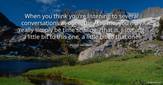 Gell-Mann, Murray. "When you think you're listening to several conversations at once, they tell me, you may really simply be time sharing - that is, listening a little bit to this one, a little bit to that one." FixQuotes. January 15, 2026. https://fixquotes.com/quotes/when-you-think-youre-listening-to-several-29499/.