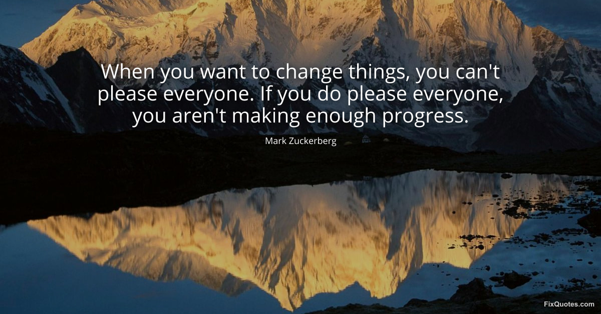 Zuckerberg, Mark. (2026, January 18). When you want to change things, you can't please everyone. If you do please everyone, you aren't making enough progress. FixQuotes. https://fixquotes.com/quotes/when-you-want-to-change-things-you-cant-please-184037/