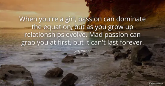 Watley, Jody. (2026, January 17). When you're a girl, passion can dominate the equation, but as you grow up relationships evolve. Mad passion can grab you at first, but it can't last forever. FixQuotes. https://fixquotes.com/quotes/when-youre-a-girl-passion-can-dominate-the-52081/