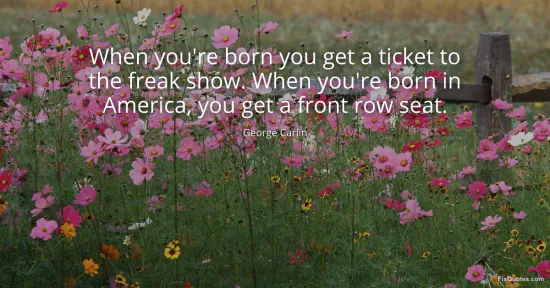 Carlin, George. (2026, January 14). When you're born you get a ticket to the freak show. When you're born in America, you get a front row seat. FixQuotes. https://fixquotes.com/quotes/when-youre-born-you-get-a-ticket-to-the-freak-137482/