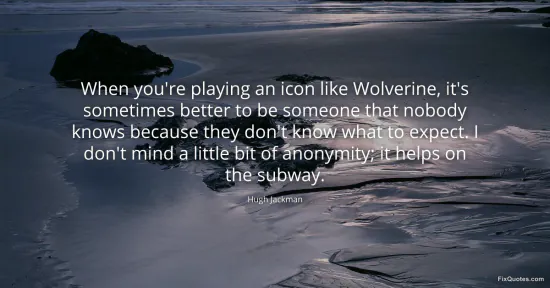 "When you're playing an icon like Wolverine, it's sometimes better to be someone that nobody knows because they don't know what to expect. I don't mind a little bit of anonymity; it helps on the subway"