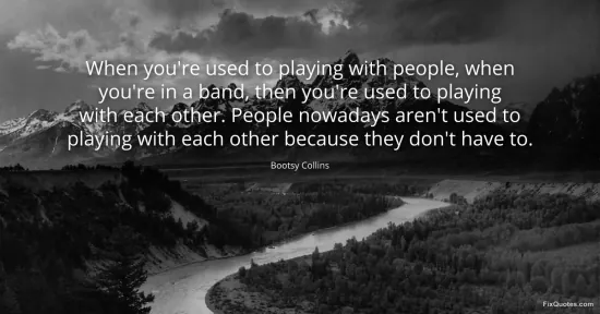Collins, Bootsy. "When you're used to playing with people, when you're in a band, then you're used to playing with each other. People nowadays aren't used to playing with each other because they don't have to." FixQuotes. January 16, 2026. https://fixquotes.com/quotes/when-youre-used-to-playing-with-people-when-youre-85609/.