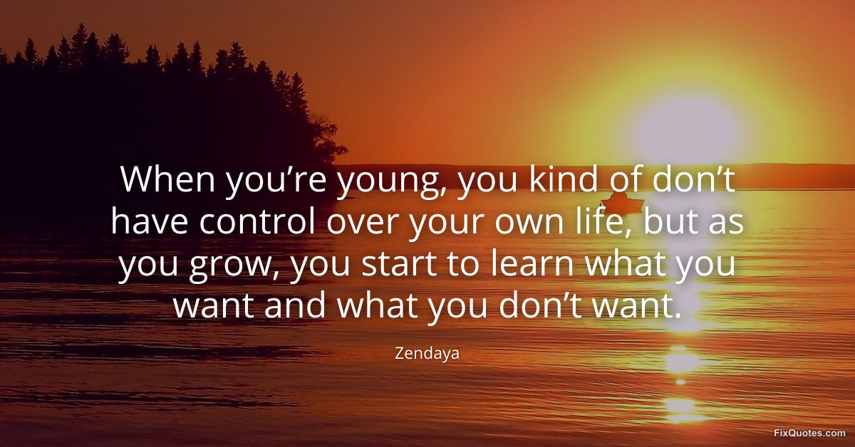 Zendaya. (2026, January 30). When you’re young, you kind of don’t have control over your own life, but as you grow, you start to learn what you want and what you don’t want. FixQuotes. https://fixquotes.com/quotes/when-youre-young-you-kind-of-dont-have-control-184662/