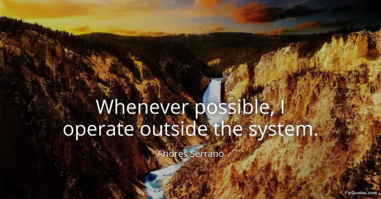 Serrano, Andres. "Whenever possible, I operate outside the system." FixQuotes. January 18, 2026. https://fixquotes.com/quotes/whenever-possible-i-operate-outside-the-system-11684/.