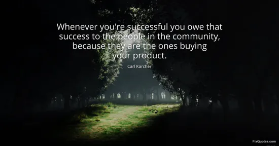 Karcher, Carl. (2026, January 15). Whenever you're successful you owe that success to the people in the community, because they are the ones buying your product. FixQuotes. https://fixquotes.com/quotes/whenever-youre-successful-you-owe-that-success-to-170758/