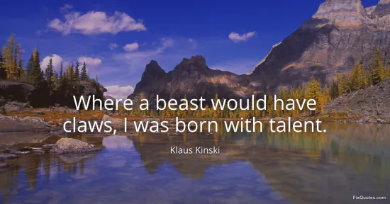 Kinski, Klaus. "Where a beast would have claws, I was born with talent." FixQuotes. January 15, 2026. https://fixquotes.com/quotes/where-a-beast-would-have-claws-i-was-born-with-152091/.