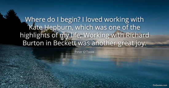 O'Toole, Peter. (2026, January 15). Where do I begin? I loved working with Kate Hepburn, which was one of the highlights of my life; Working with Richard Burton in Beckett was another great joy. FixQuotes. https://fixquotes.com/quotes/where-do-i-begin-i-loved-working-with-kate-161634/