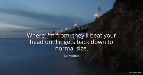 Mitchell, Kel. (2026, January 16). Where I'm from, they'll beat your head until it gets back down to normal size. FixQuotes. https://fixquotes.com/quotes/where-im-from-theyll-beat-your-head-until-it-gets-117827/