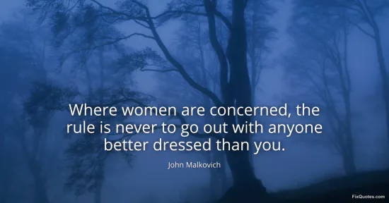 Malkovich, John. "Where women are concerned, the rule is never to go out with anyone better dressed than you." FixQuotes. January 17, 2026. https://fixquotes.com/quotes/where-women-are-concerned-the-rule-is-never-to-go-52326/.