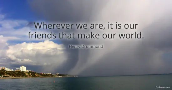 Drummond, Henry. "Wherever we are, it is our friends that make our world." FixQuotes. January 18, 2026. https://fixquotes.com/quotes/wherever-we-are-it-is-our-friends-that-make-our-20874/.