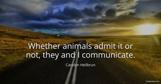 Heilbrun, Carolyn. (2026, January 16). Whether animals admit it or not, they and I communicate. FixQuotes. https://fixquotes.com/quotes/whether-animals-admit-it-or-not-they-and-i-127974/