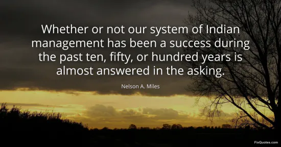 Miles, Nelson A. "Whether or not our system of Indian management has been a success during the past ten, fifty, or hundred years is almost answered in the asking." FixQuotes. January 16, 2026. https://fixquotes.com/quotes/whether-or-not-our-system-of-indian-management-83188/.