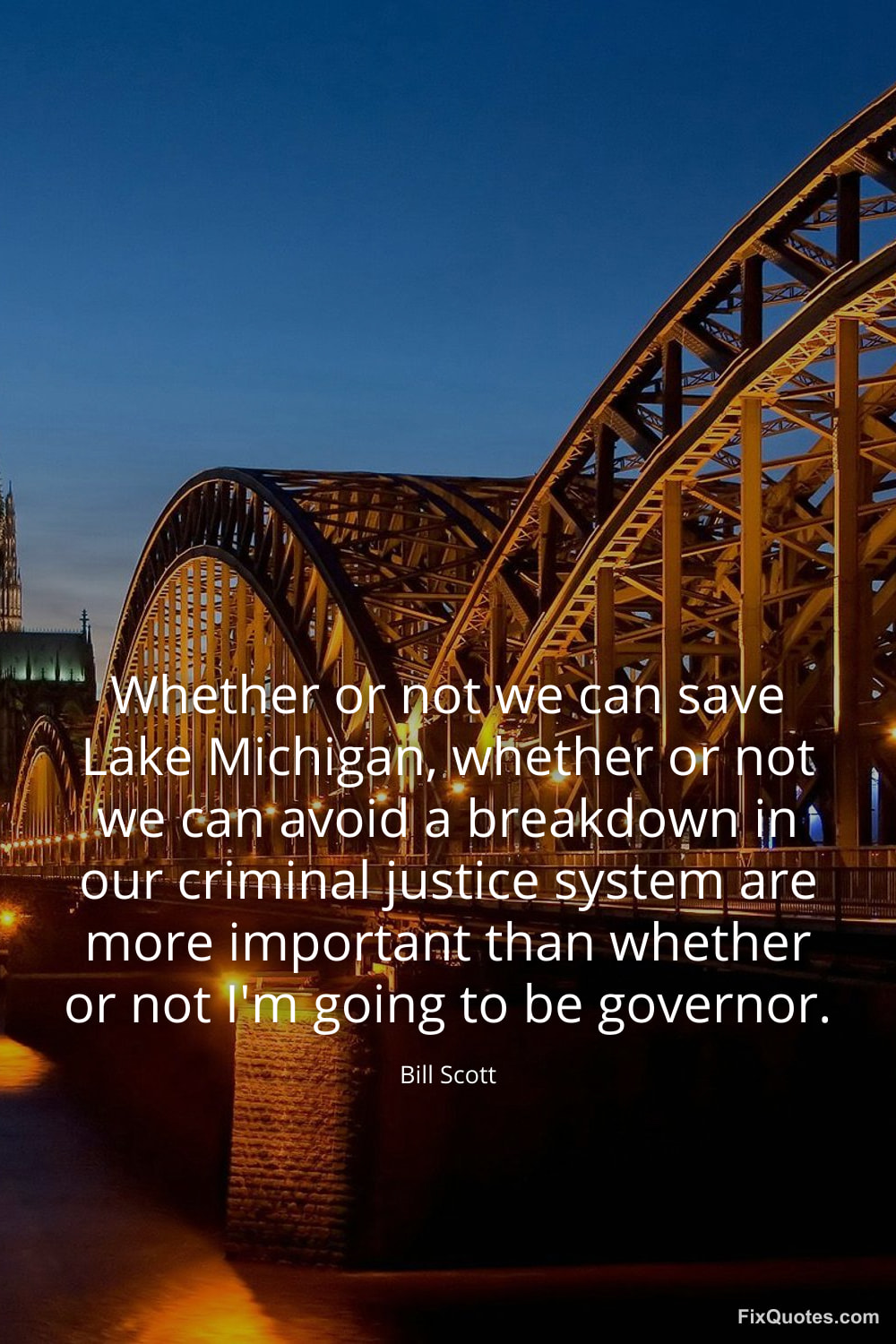 Scott, Bill. (2026, January 16). Whether or not we can save Lake Michigan, whether or not we can avoid a breakdown in our criminal justice system are more important than whether or not I'm going to be governor. FixQuotes. https://fixquotes.com/quotes/whether-or-not-we-can-save-lake-michigan-whether-117571/
