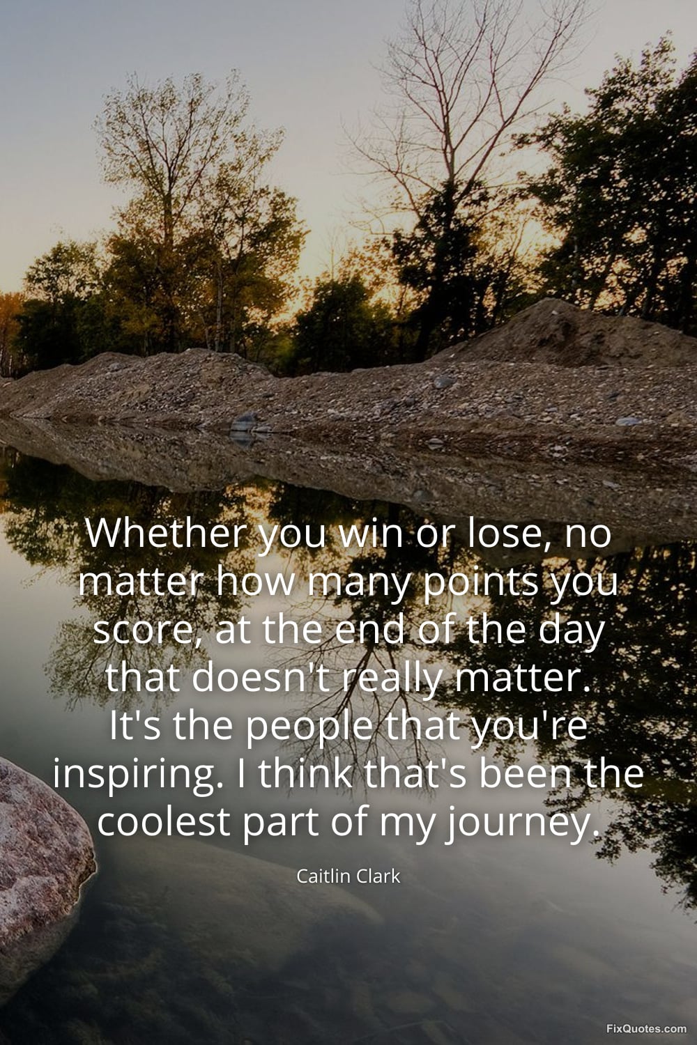 Clark, Caitlin. (2026, March 19). Whether you win or lose, no matter how many points you score, at the end of the day that doesn't really matter. It's the people that you're inspiring. I think that's been the coolest part of my journey. FixQuotes. https://fixquotes.com/quotes/whether-you-win-or-lose-no-matter-how-many-points-186153/