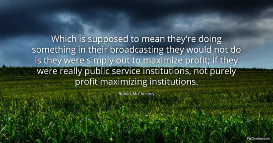 McChesney, Robert. "Which is supposed to mean they're doing something in their broadcasting they would not do is they were simply out to maximize profit; if they were really public service institutions, not purely profit maximizing institutions." FixQuotes. January 15, 2026. https://fixquotes.com/quotes/which-is-supposed-to-mean-theyre-doing-something-151247/.