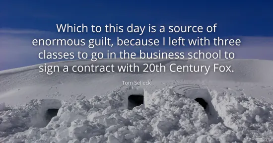 Selleck, Tom. (2026, January 16). Which to this day is a source of enormous guilt, because I left with three classes to go in the business school to sign a contract with 20th Century Fox. FixQuotes. https://fixquotes.com/quotes/which-to-this-day-is-a-source-of-enormous-guilt-89694/