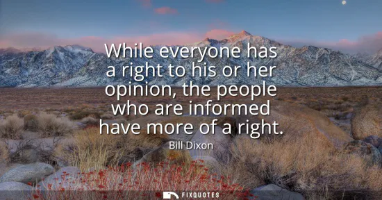Dixon draws a sharp line between the equality of speech and the inequality of knowledge. Everyone may speak, yet not every claim carries the same weight. The phrase "more of a right" is deliberately provocative: not a legal privilege to be enforced by the state, but a moral and epistemic authority earned through study, experience, and accountability.