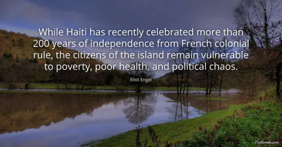 Engel, Eliot. (2026, January 17). While Haiti has recently celebrated more than 200 years of independence from French colonial rule, the citizens of the island remain vulnerable to poverty, poor health, and political chaos. FixQuotes. https://fixquotes.com/quotes/while-haiti-has-recently-celebrated-more-than-200-52622/
